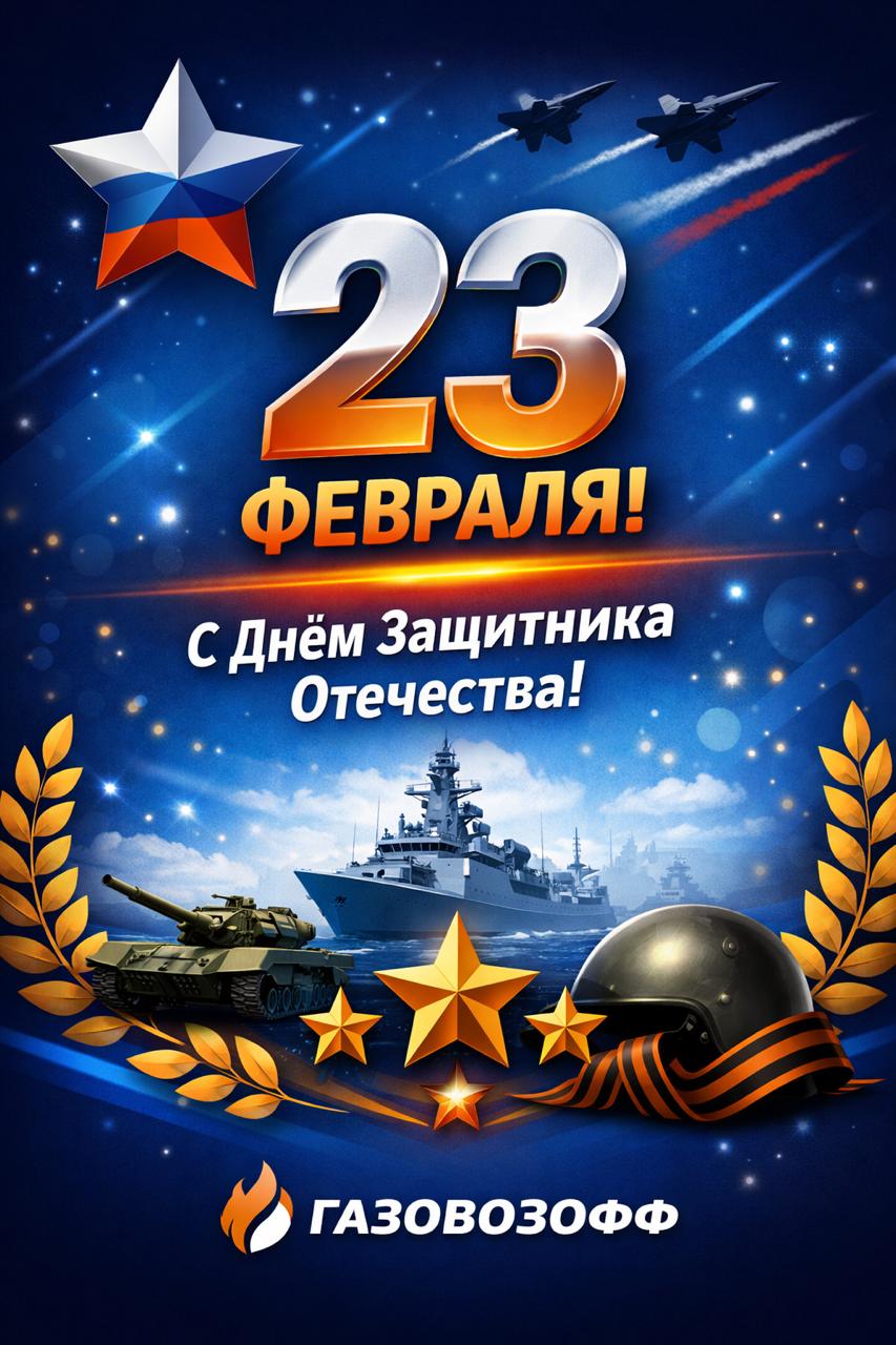 Компания Газовозофф поздравляет всех мужчин с Днём защитника Отечества!